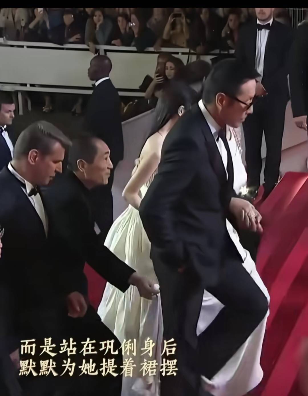 当晚,陈道明身着黑色丝绒西装,头发花白却精神矍铄,巩俐则以一袭红黑拼接拖尾礼服霸气登场。两人作为电影节评委会主席和副主席,并肩走上红毯时,巩俐的裙摆被风吹得微微翘起。就在记者镜头对准两人的瞬间,陈道明突然停下脚步,自然地弯腰伸手,帮巩俐将裙摆抚平。这一幕被现场媒体拍下,视频10分钟内登上微博热搜第一,播放量突破2亿。